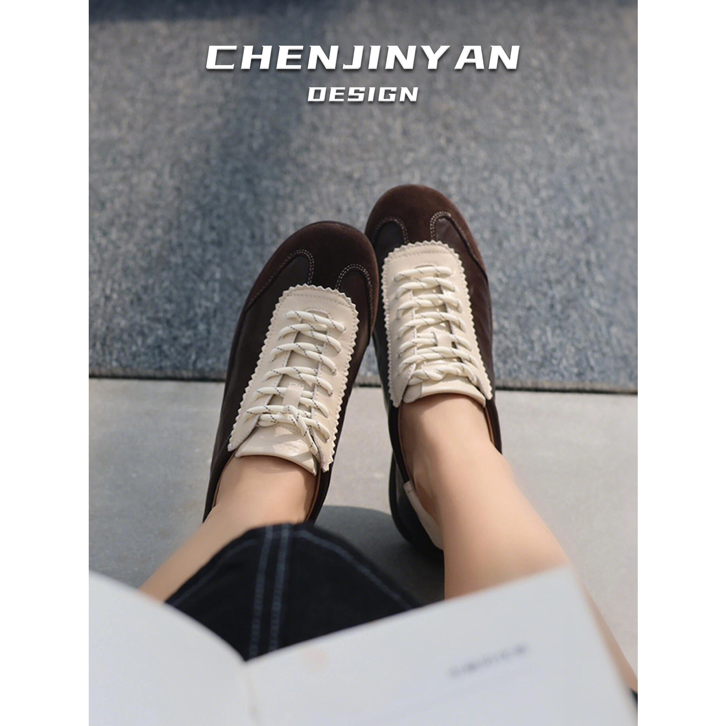 羊皮书平底德训鞋2025秋季新款系带复古阿甘鞋真皮运动休闲板鞋女