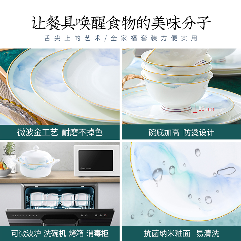 碗碟套装家用2025新款高颜值景德镇陶瓷餐具轻奢简约乔迁碗盘筷