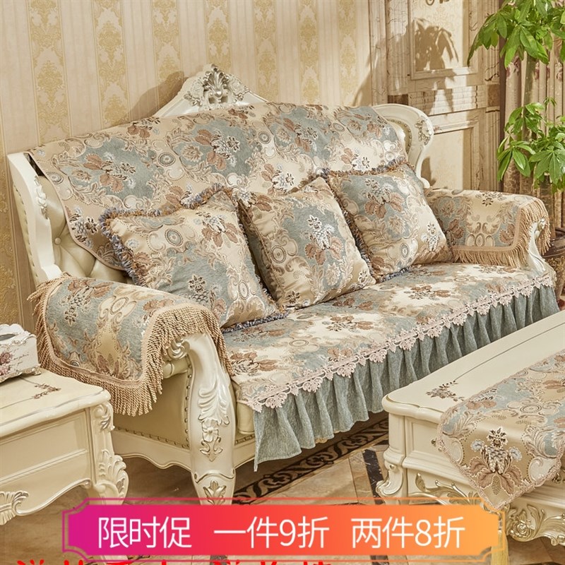 欧式沙发垫套罩组合123布艺全盖四季坐垫子高档奢华防滑靠背巾蓝