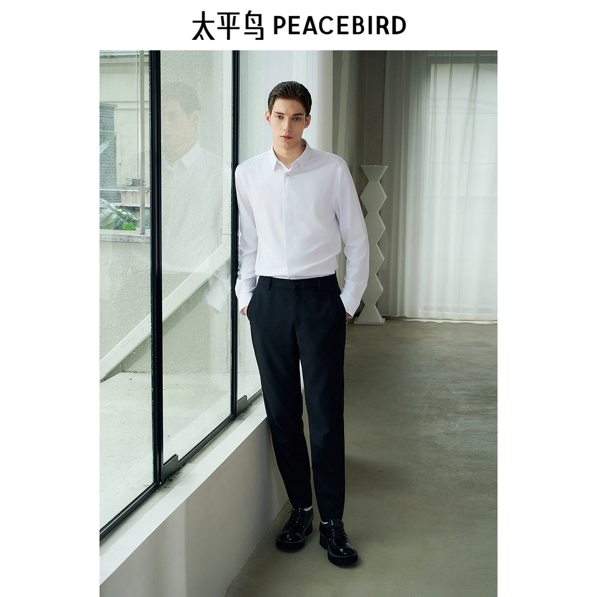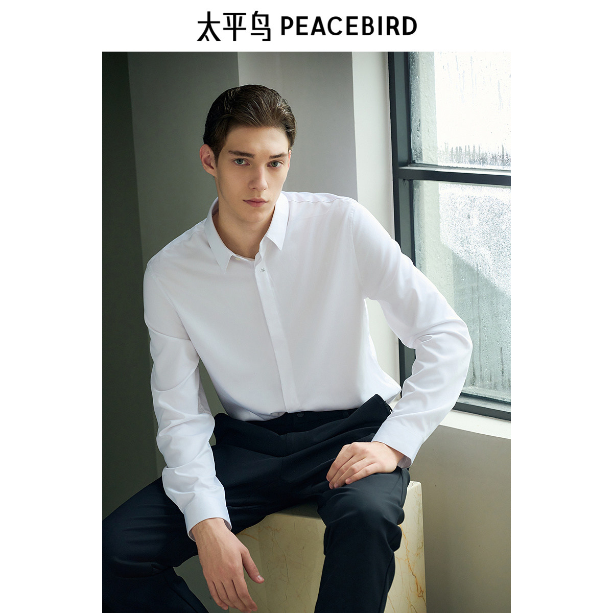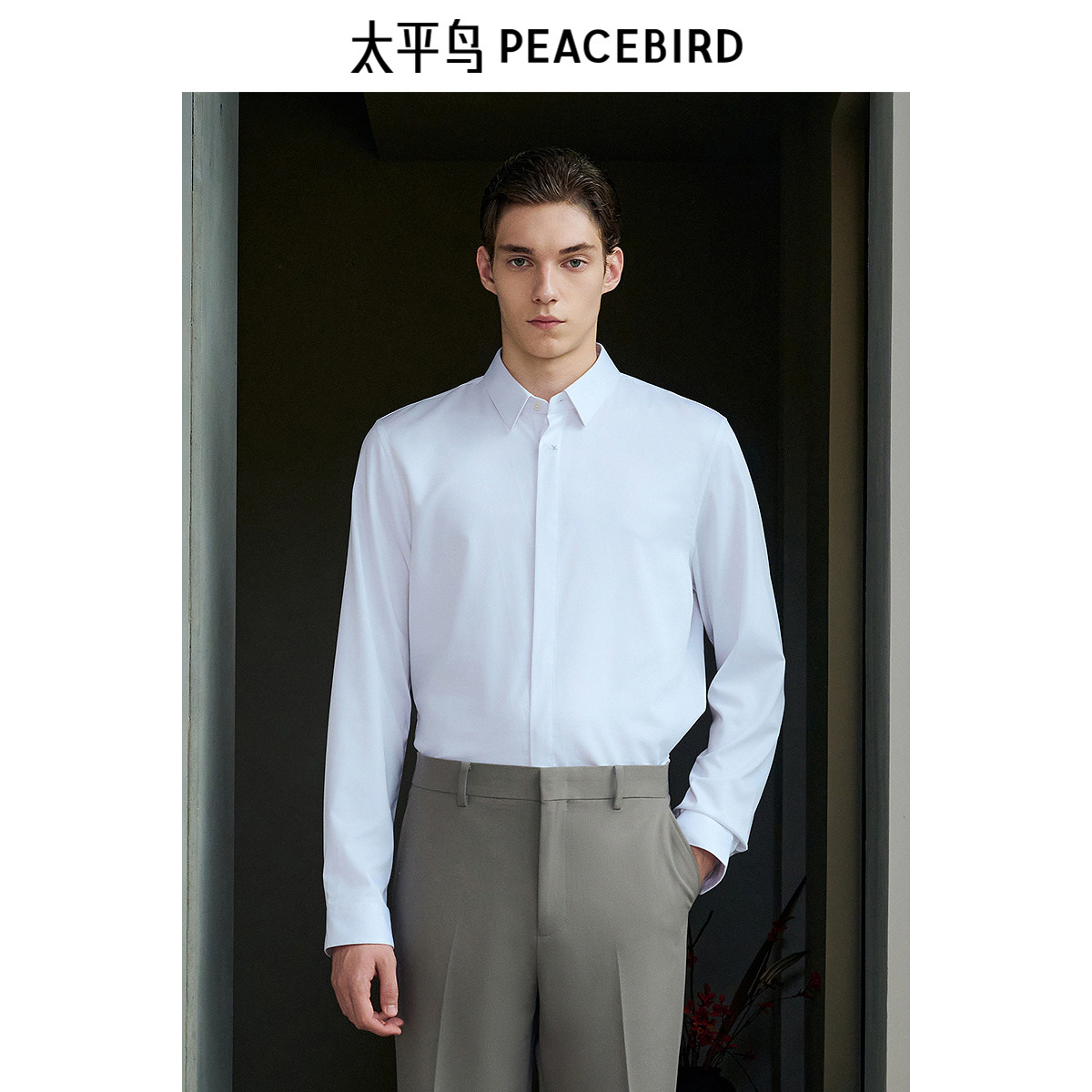 【商场同款】太平鸟男装衬衫春季修身刺绣商务衬衣 B1CAF1E13