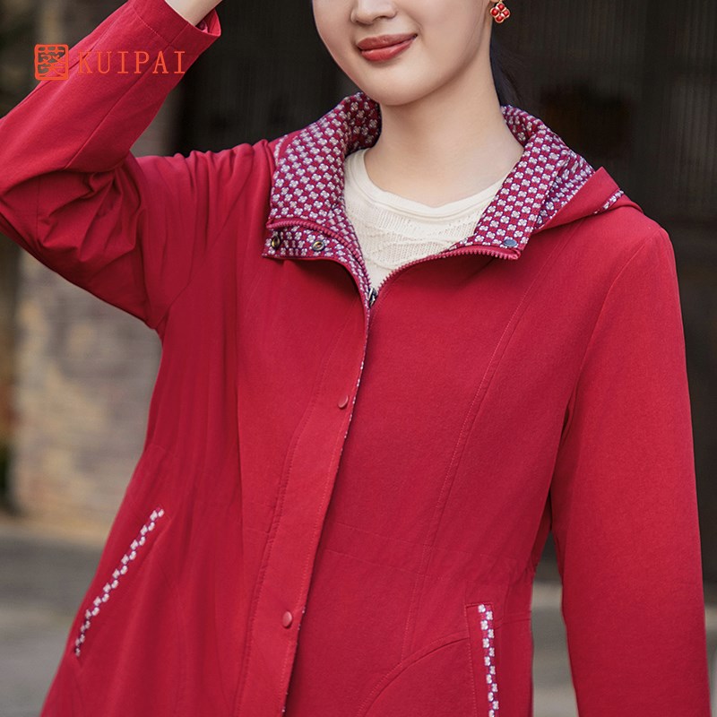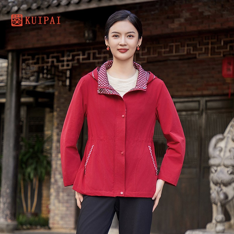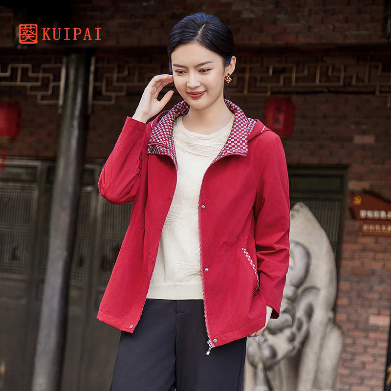 葵牌2025春季新款中老年妈妈装休闲连帽外套女洋气开衫宽松风衣