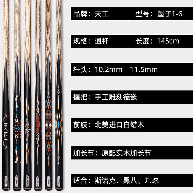 25款天工墨子12台球杆布衣小头斯诺克通杆中式黑八桌球杆专用手工