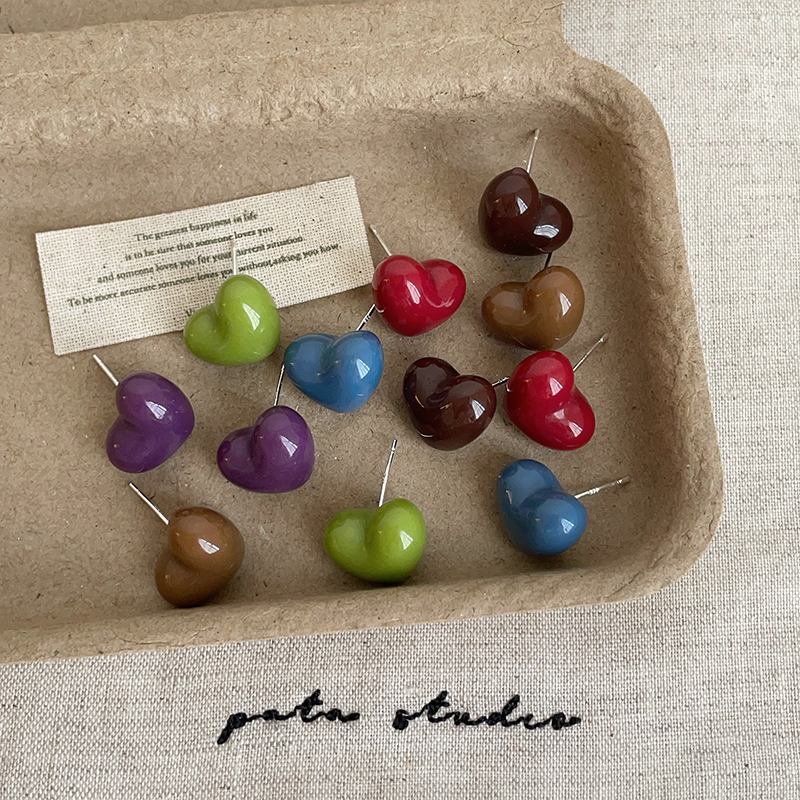 秋季新款彩色滴油爱心耳钉女简约高级感个性精致甜美时尚耳环耳饰