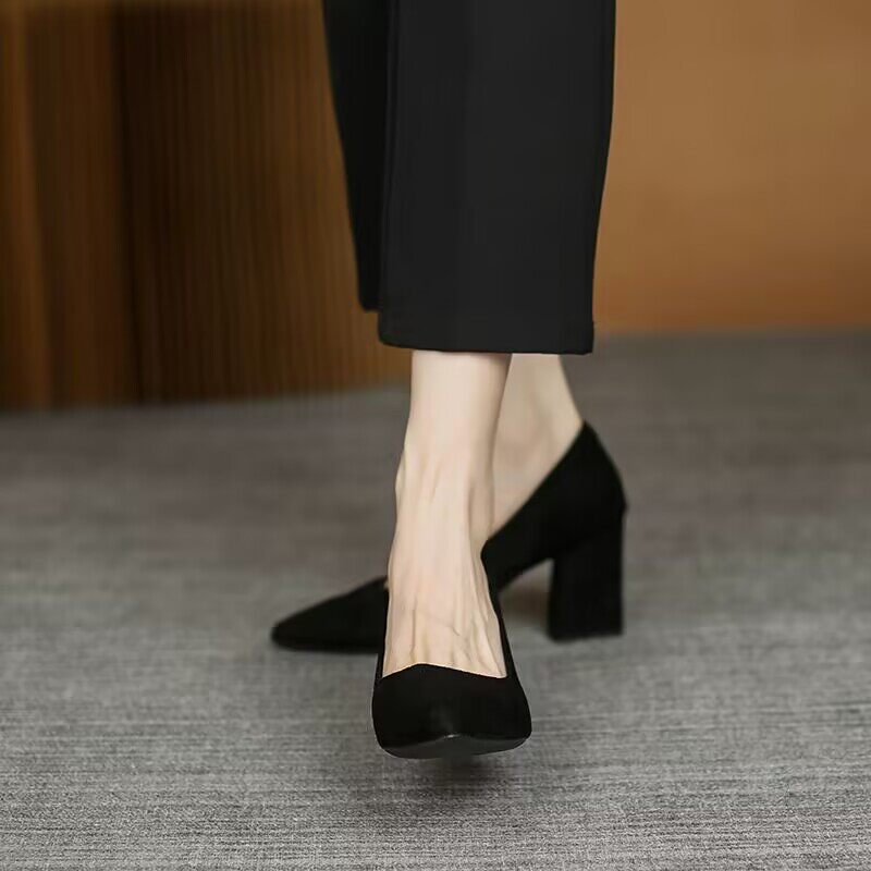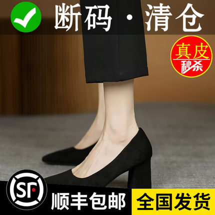 断码清仓粗跟面试女2025新款黑色职业工作中跟单鞋学生正装高跟鞋