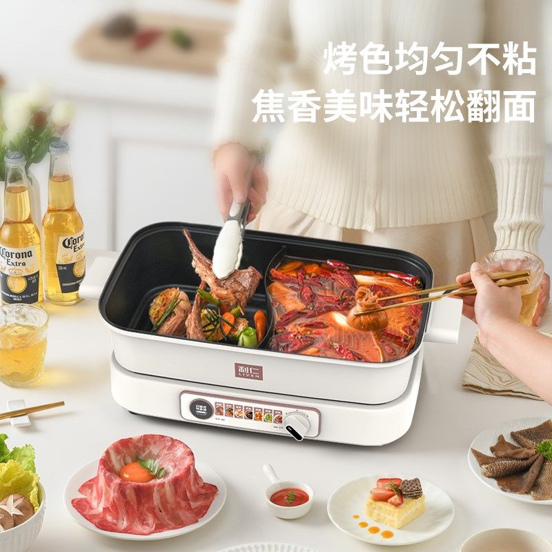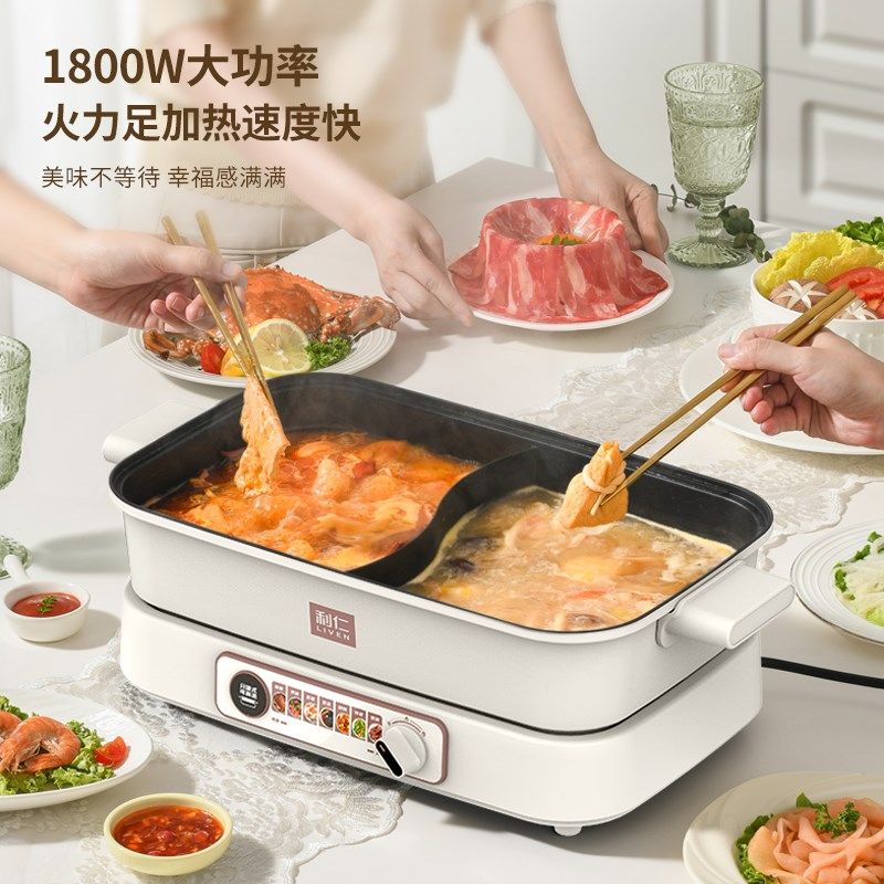 利仁电火锅锅分体式鸳鸯锅家用大容量火锅电锅电炒锅电煮锅涮锅L