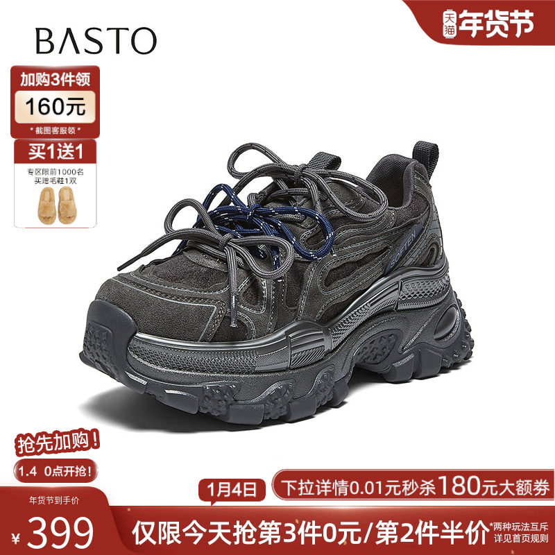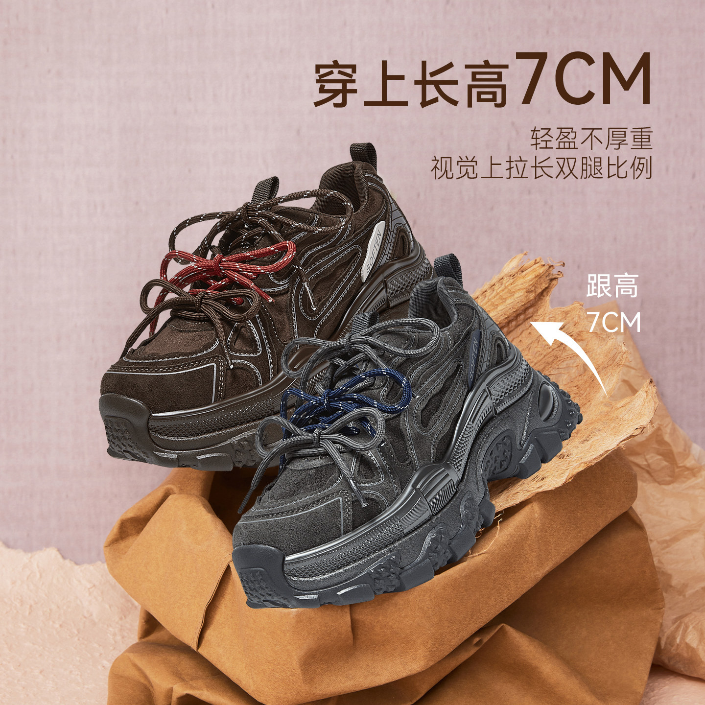 百思图2026春季商场新款潮酷加绒厚底老爹鞋增高女休闲鞋G0931AM6