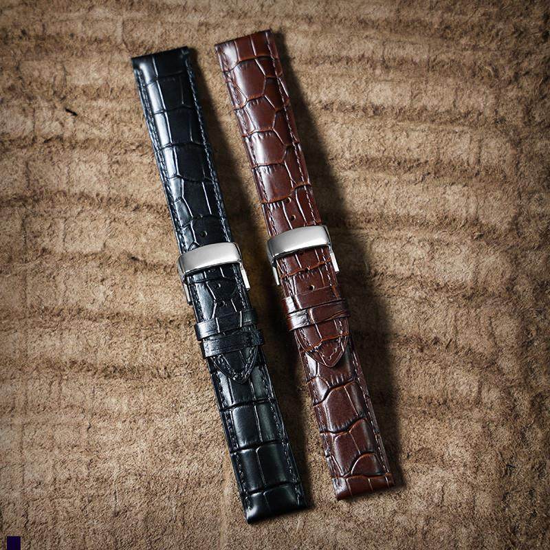 乔治格雷6500柔软小牛皮蝴蝶扣防水机械手表带22mm男士款真皮表带