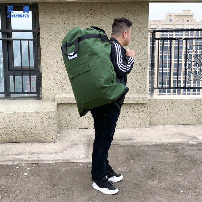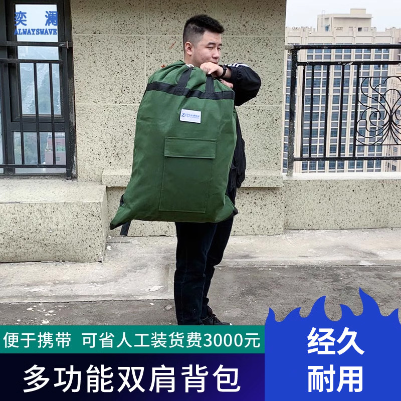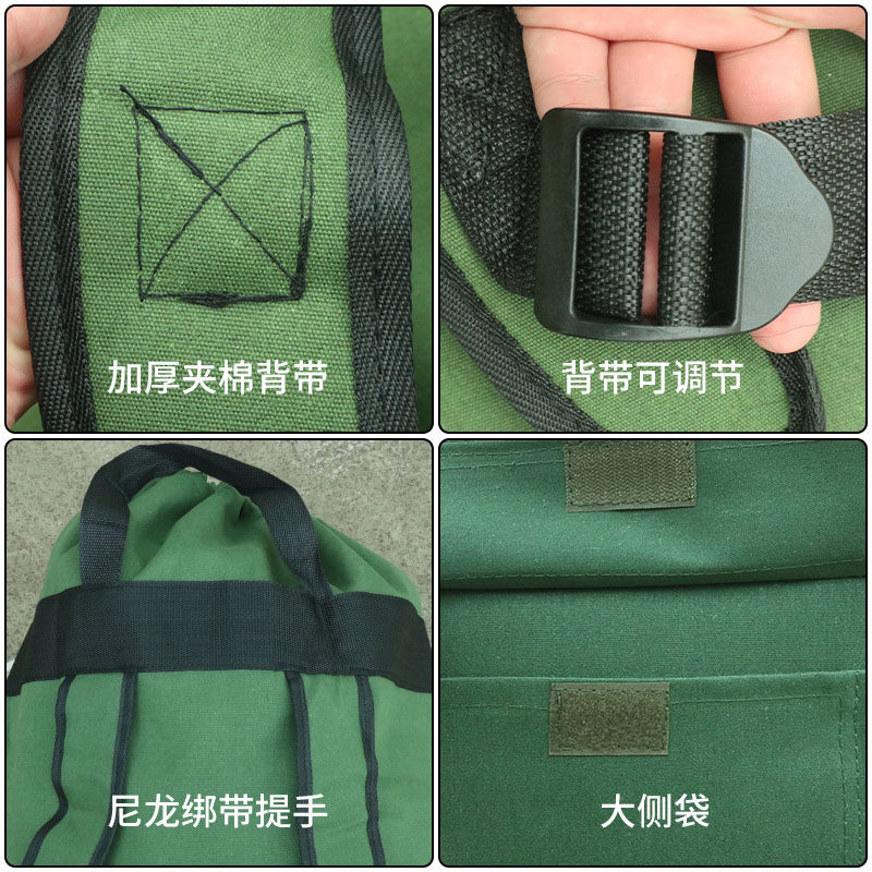奕澜快递帆布背包军绿色帆布双肩包男士户外迷彩登山旅行包大布袋