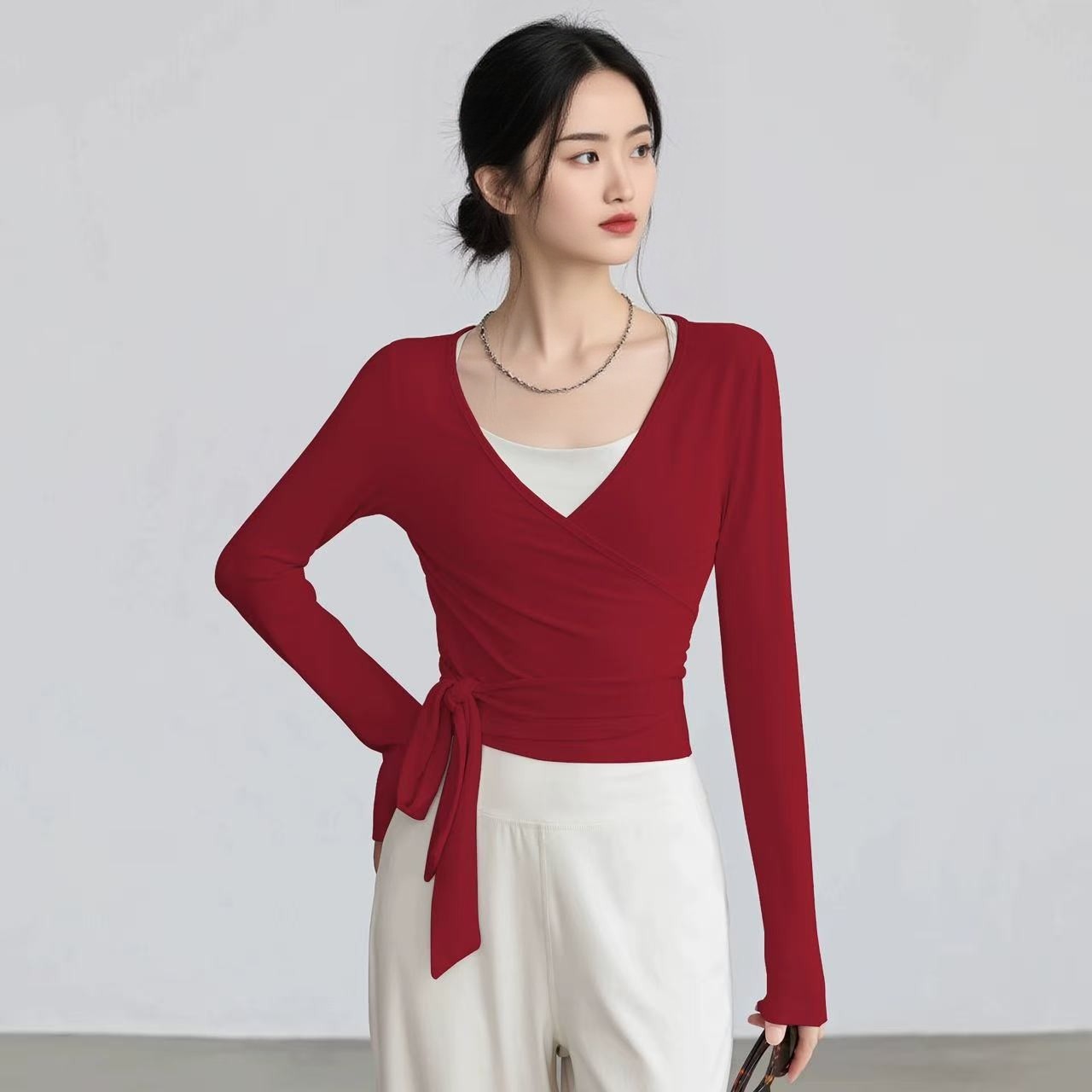 罩衫女交叉绑带修身显瘦