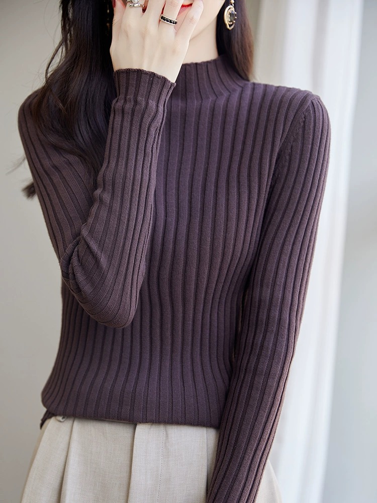100%纯棉线打底衫女内搭修身显瘦2025秋冬新款针织长袖半高领毛衣