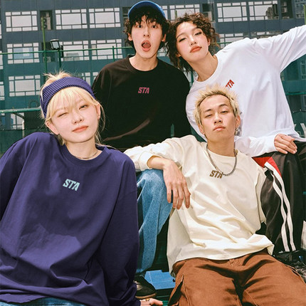 STA潮牌字母logo基础款长袖T恤春秋美式宽松纯棉打底衫男女情侣