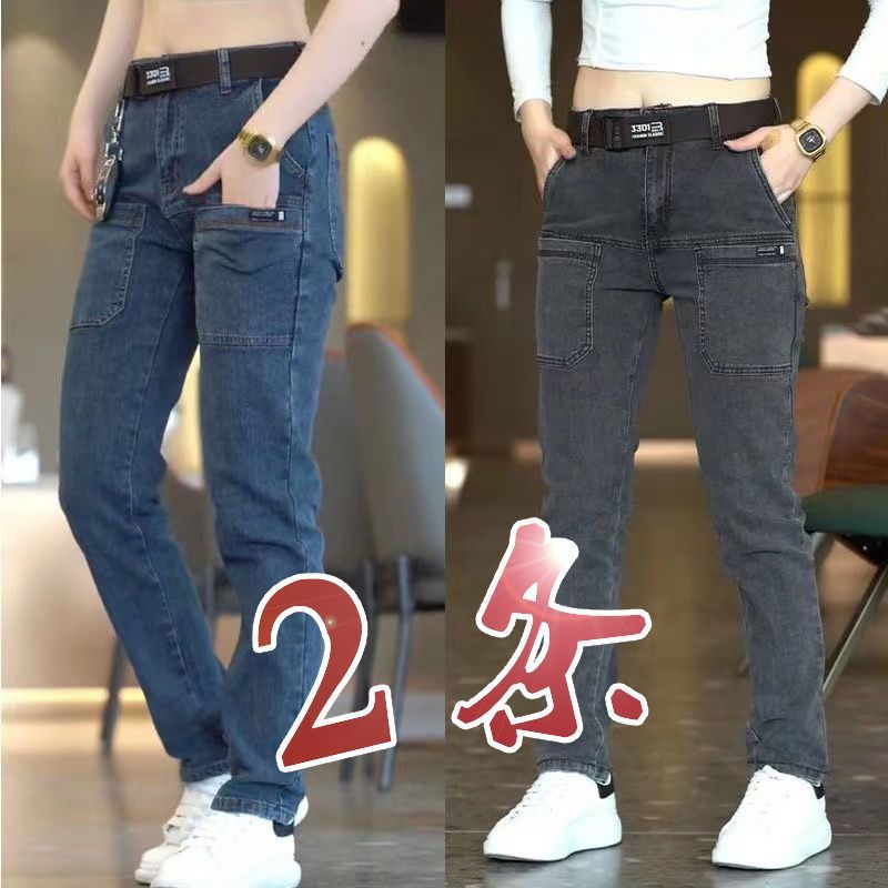 六兜弹力男士牛仔裤秋冬新品青春潮流直筒裤子男多口袋休闲长裤潮