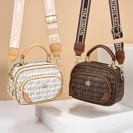 高级感女士小包包手提三层拉链女包时尚复古单肩斜挎包迷你小方包