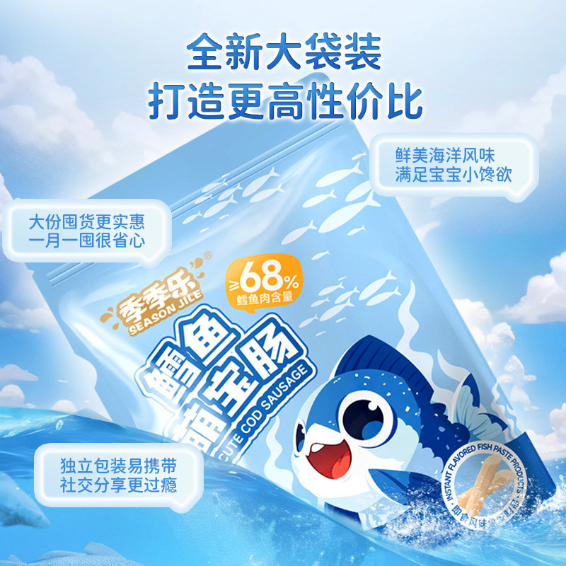 季季乐鳕鱼肠82支萌宝肠原味即食肉肠休闲小零食解馋开袋即食香肠