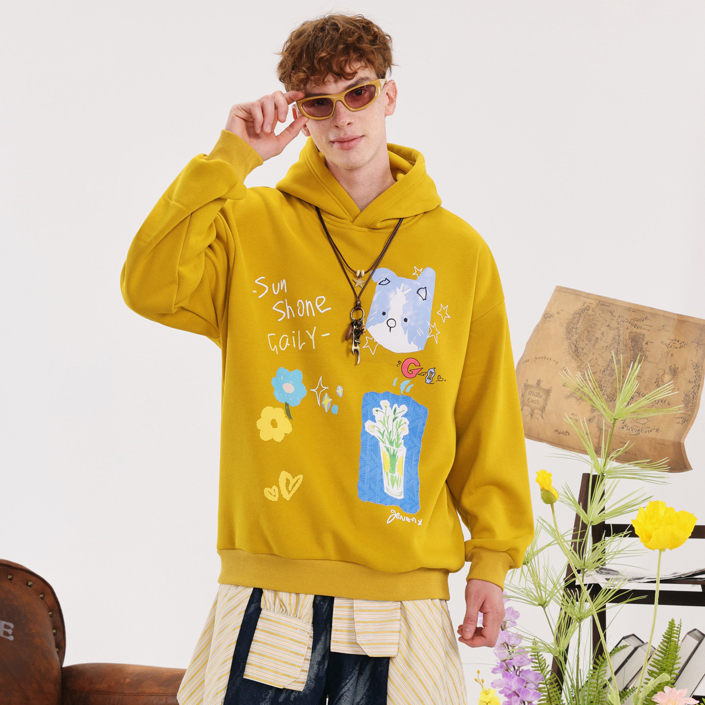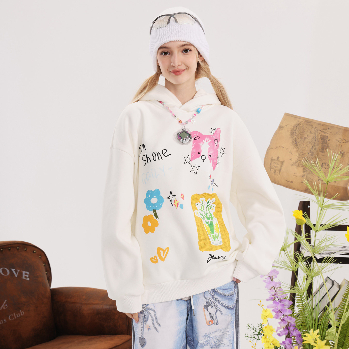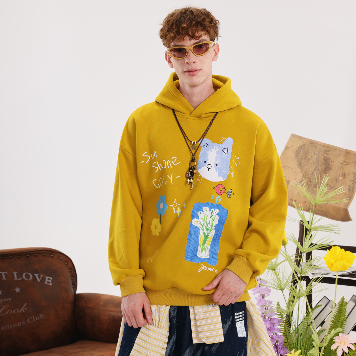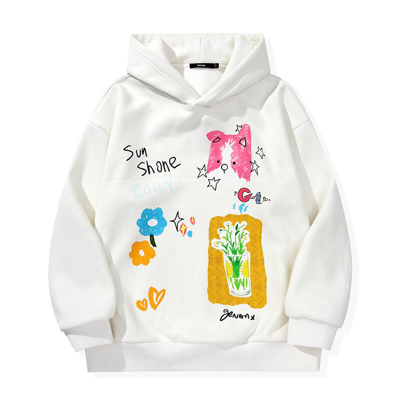 GENANX闪电潮牌2025冬季新款加绒上衣可爱印花巨好看的情侣装卫衣