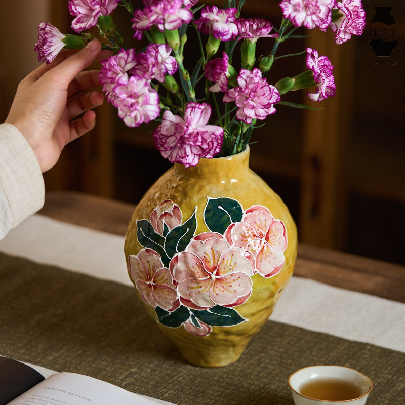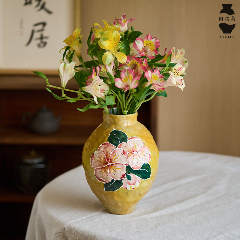 【桃花朵朵】手捏手绘陶瓷花瓶