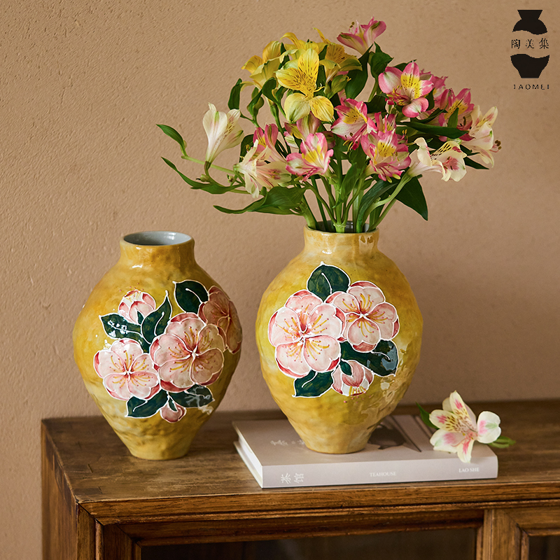 陶美集桃花手绘陶瓷花瓶景德镇中式客厅玄关插花摆件水培鲜花花器