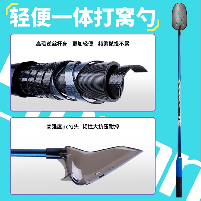钓鱼打窝勺远投一体碳素伸缩打窝杆抛饵勺浮水超硬打窝器垂钓配件