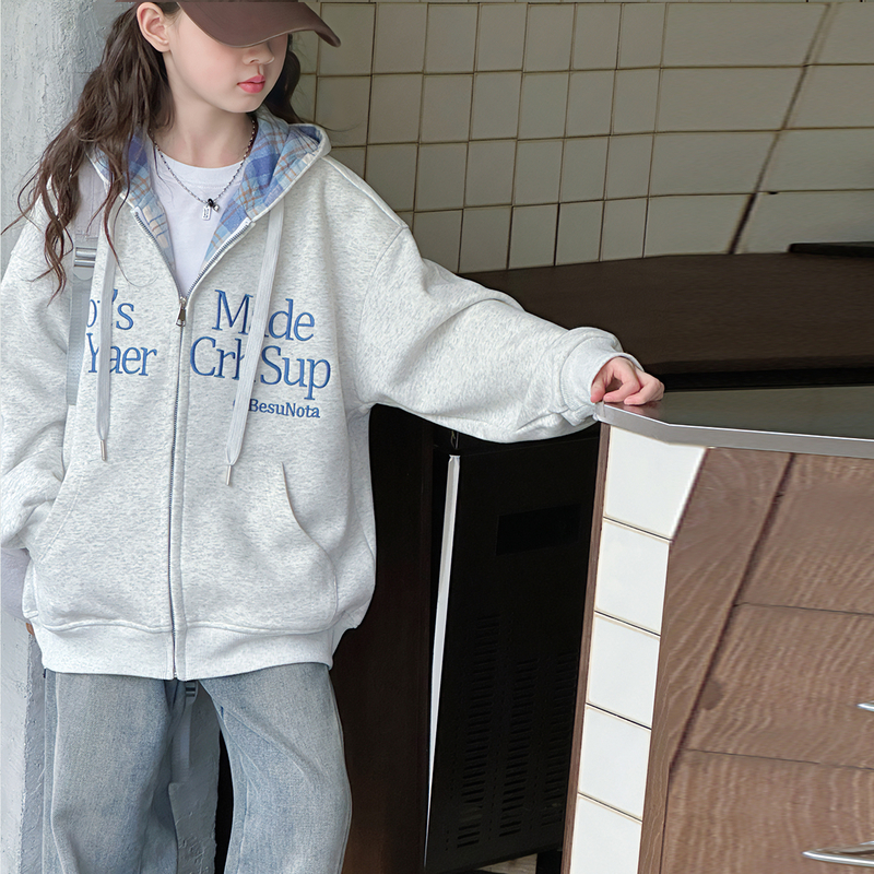 女童连帽外套2025秋装新款儿童韩系格子拼接卫衣大童春秋刺绣上衣