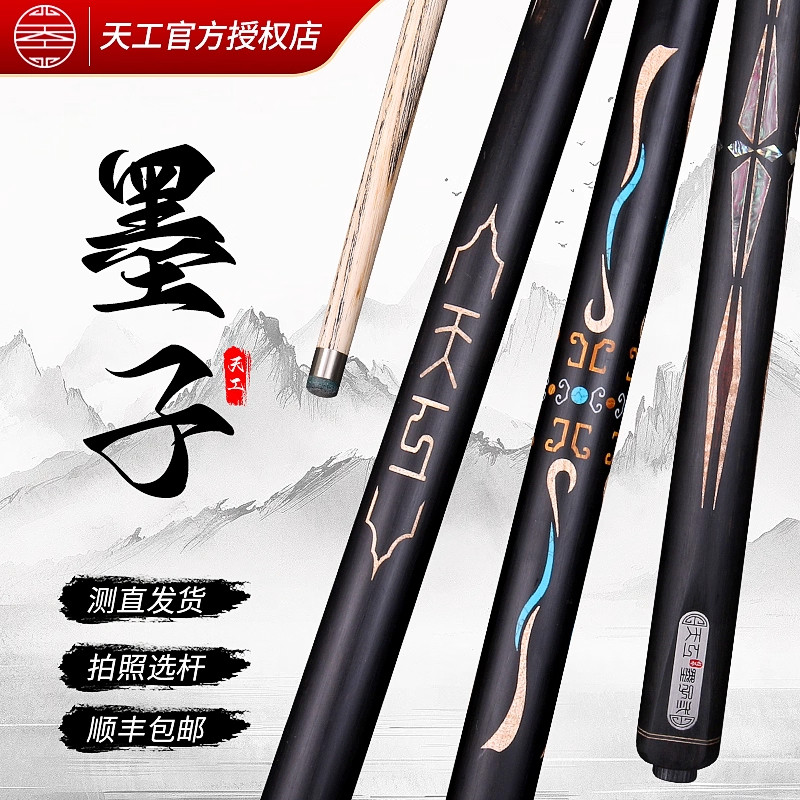25款天工墨子2台球杆中式黑八桌球杆斯诺克球杆一体通杆小头杆