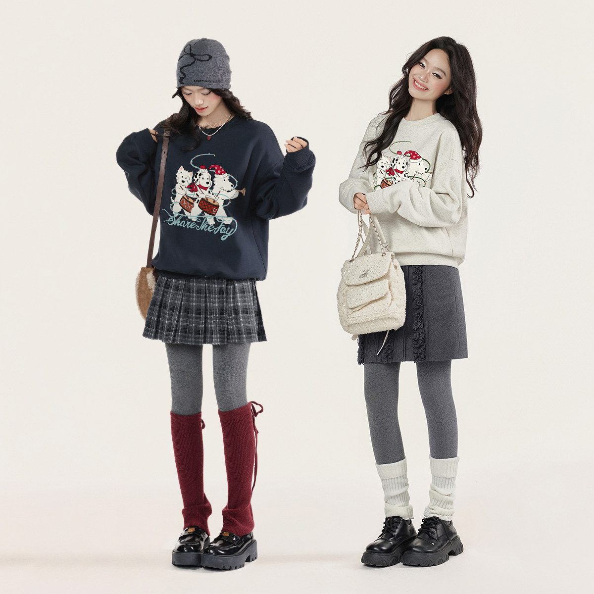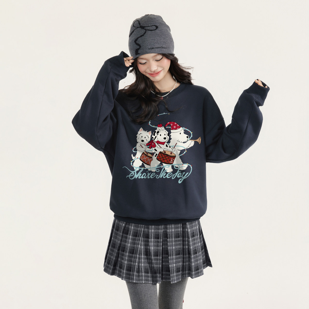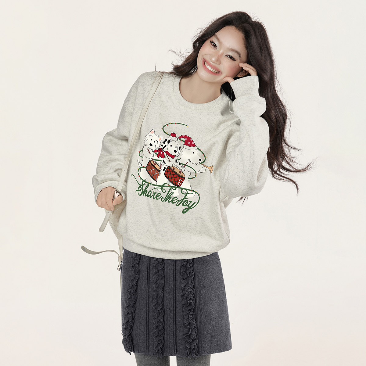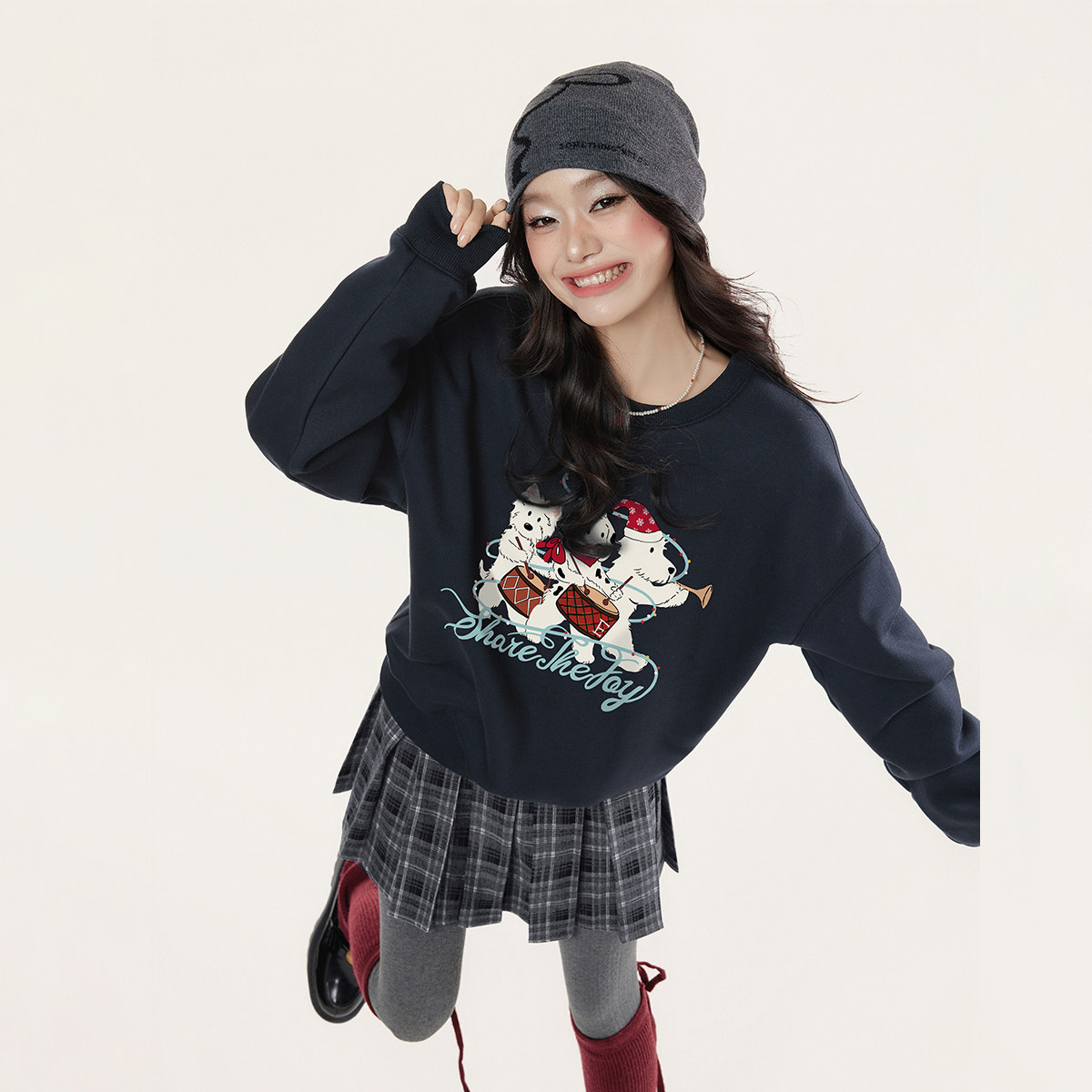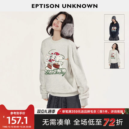 EPTISON圆领加绒卫衣女2025冬季新款宽松圣诞穿搭休闲好看厚上衣