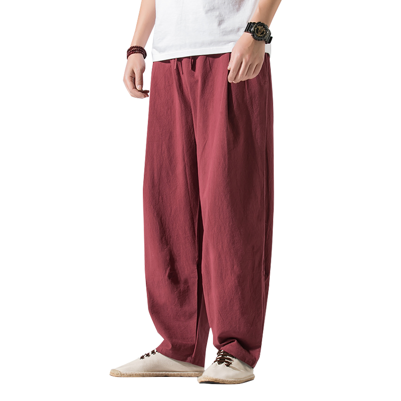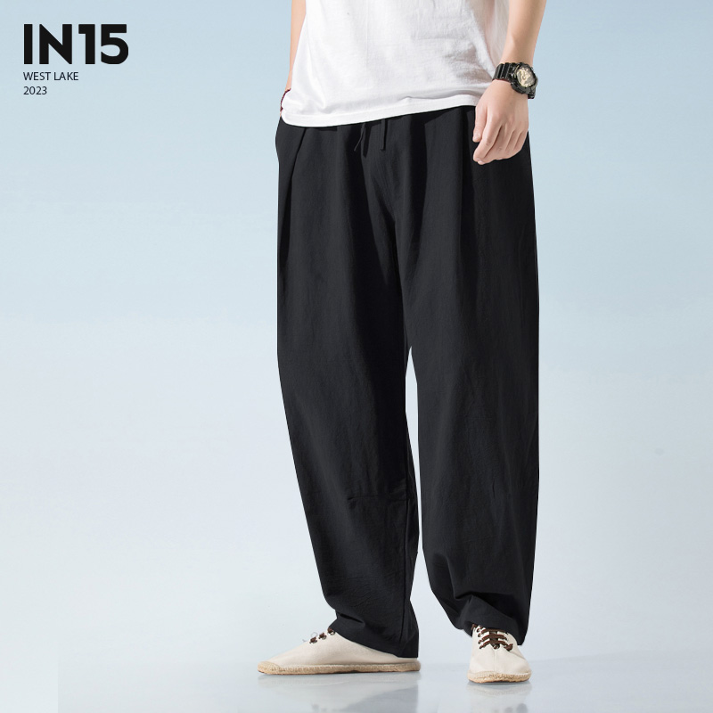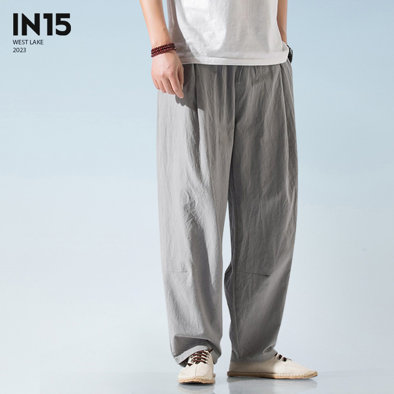 夏季薄棉麻灯笼裤男居家哈伦裤宽松复古棉质裤子大裆休闲裤道服裤