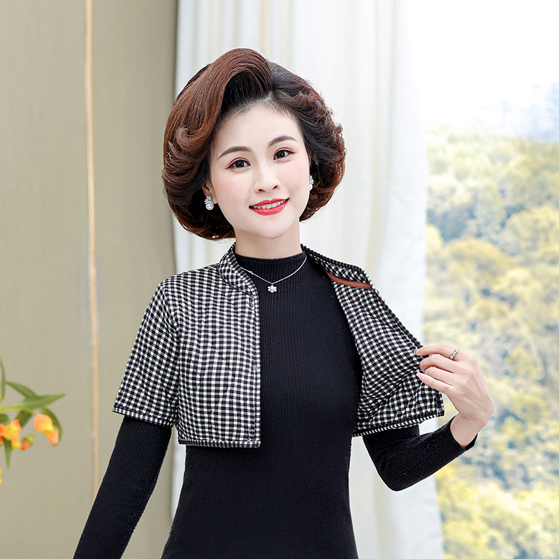 中老年女装护颈椎护肩保暖马甲妈妈加绒加厚护肩驼绒棉中袖小背心