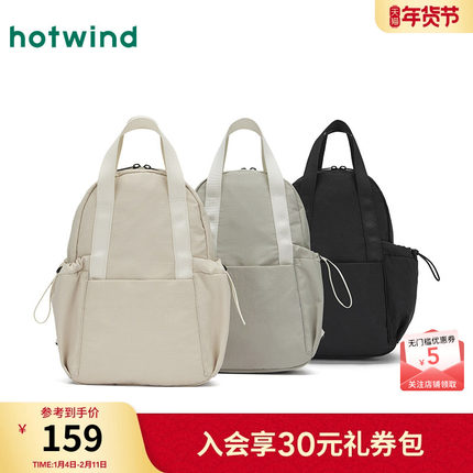 热风2025年春季新款女士户外运动时尚尼龙小双肩包大容量书包