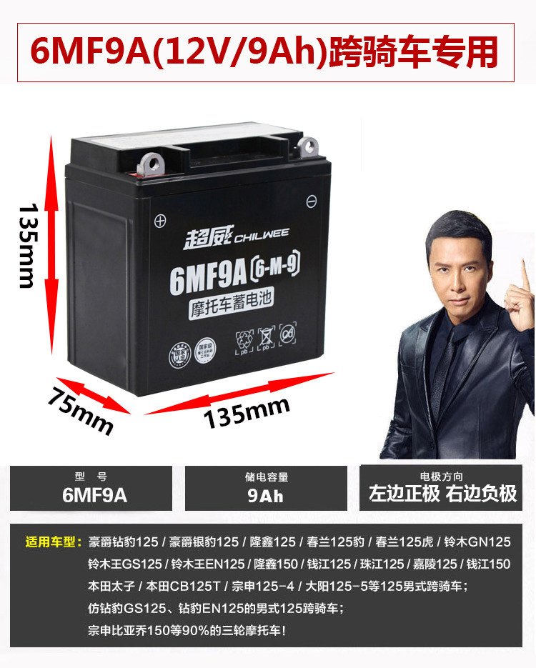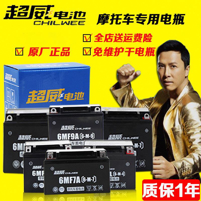 超威摩托车电瓶12v7ah5a弯梁车蓄电池125免维护踏板车12V9A干电池