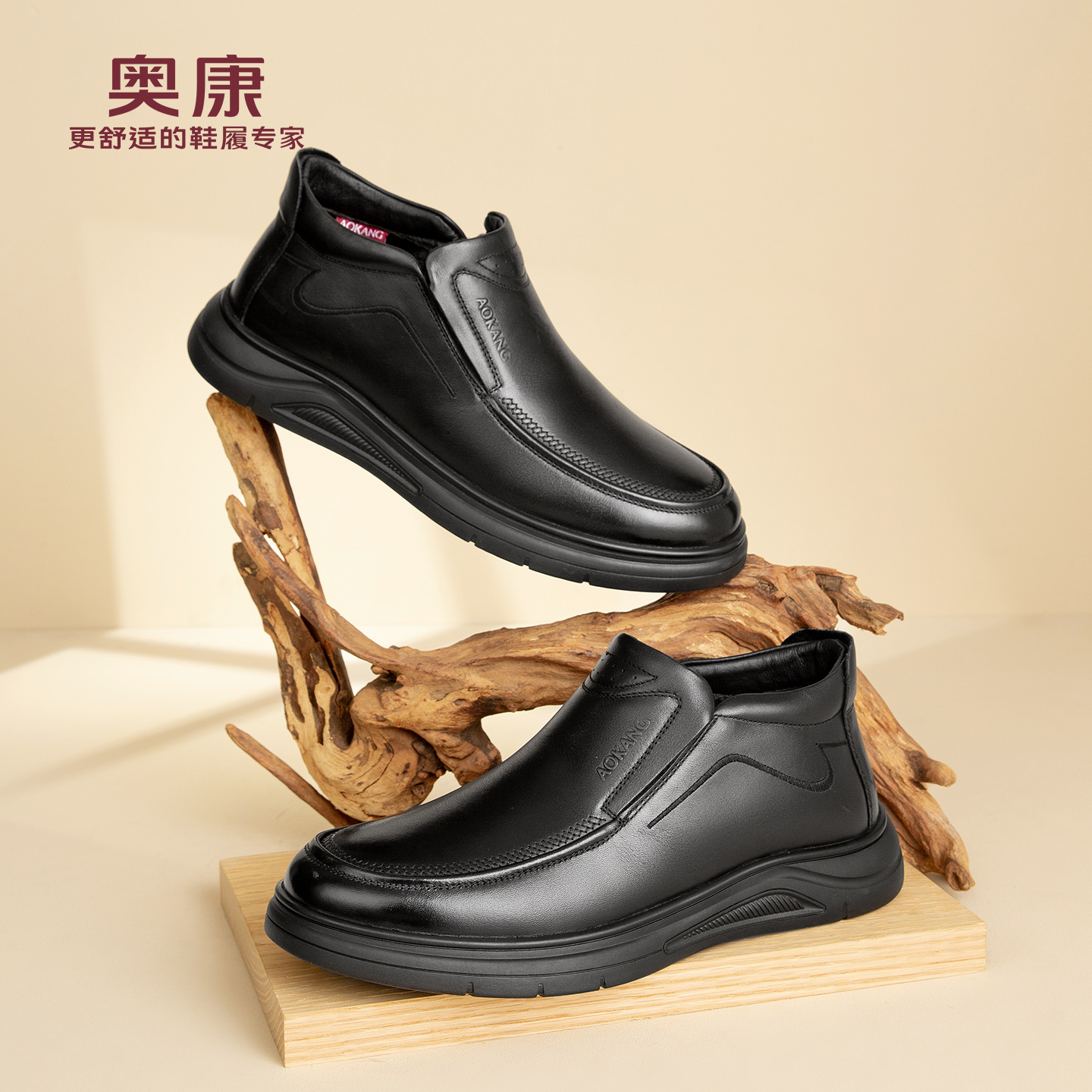 奥康 男鞋冬季新品商务休闲皮鞋高帮鞋舒适软底防滑中年爸爸棉鞋N