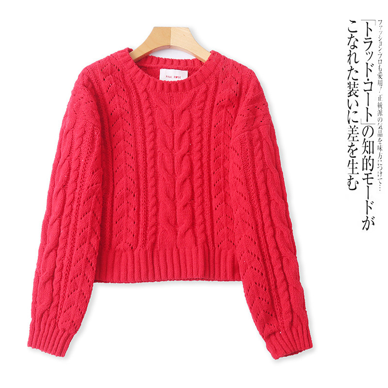 O1452外贸欧美单学院风女生短款毛衣新款圆领套头宽松时尚针织衫