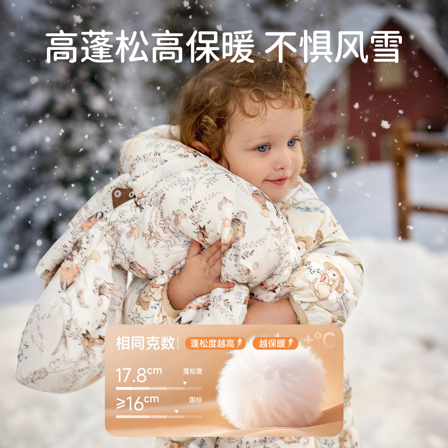 婴儿羽绒连体衣哈衣爬爬服白鸭绒