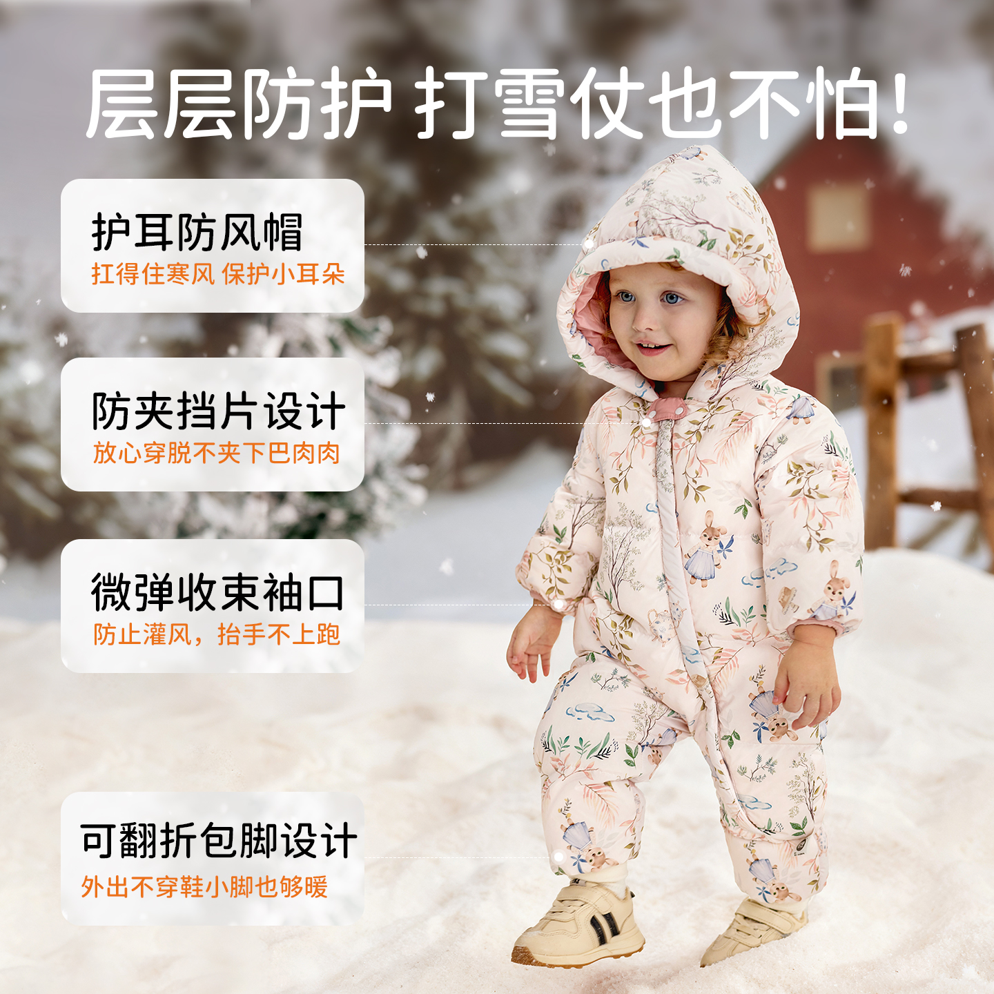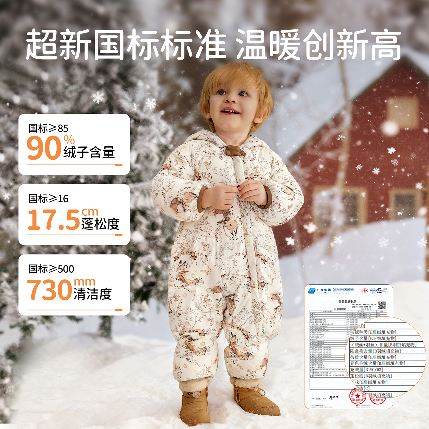 欧孕婴儿羽绒服男女宝宝连体衣冬款加厚外出保暖白鸭绒哈衣爬爬服