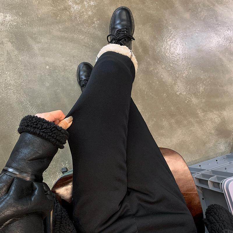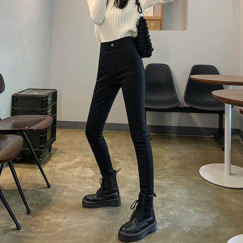 加厚绒打底裤女裤冬加绒加长松紧高腰黑色弹性显瘦外穿带绒小脚裤