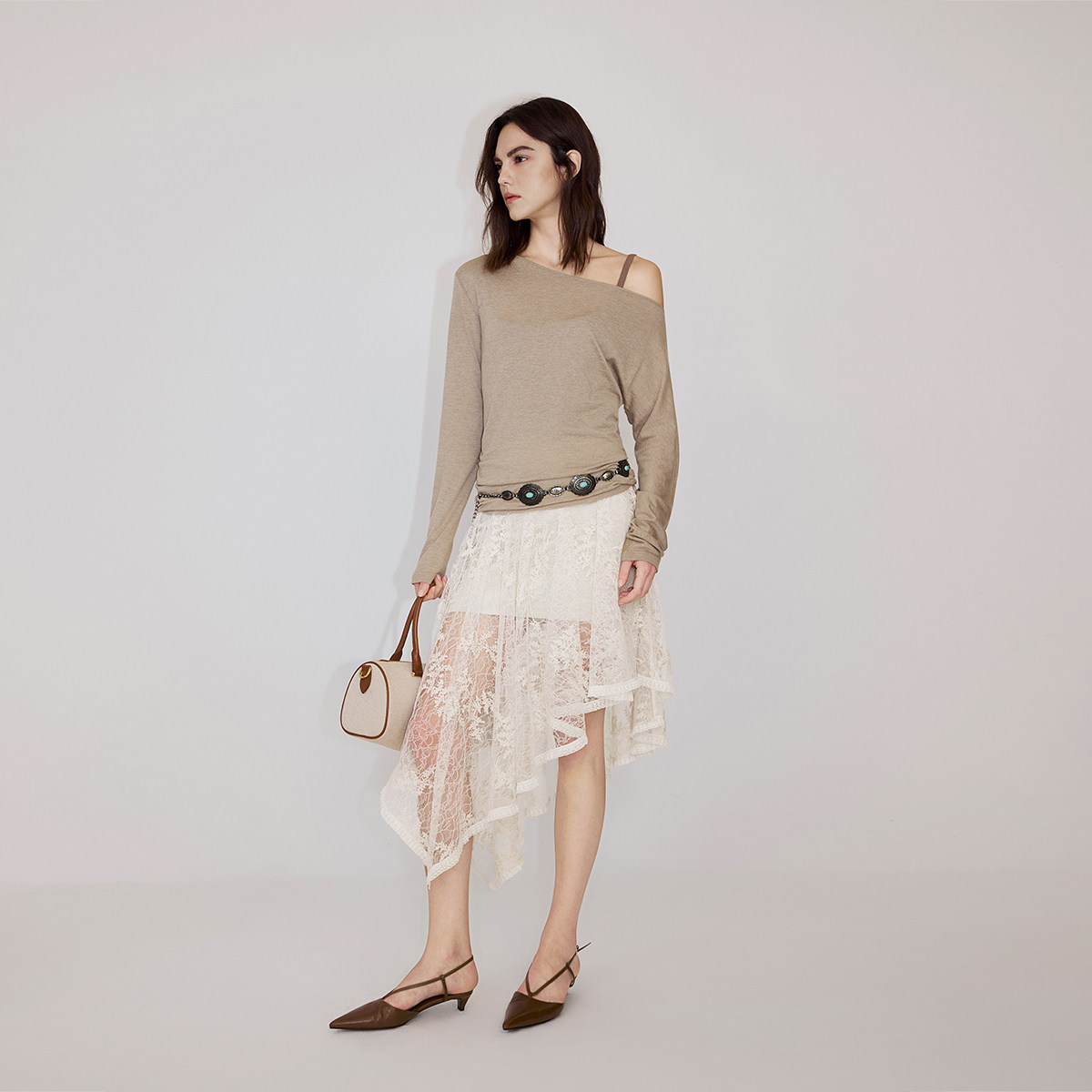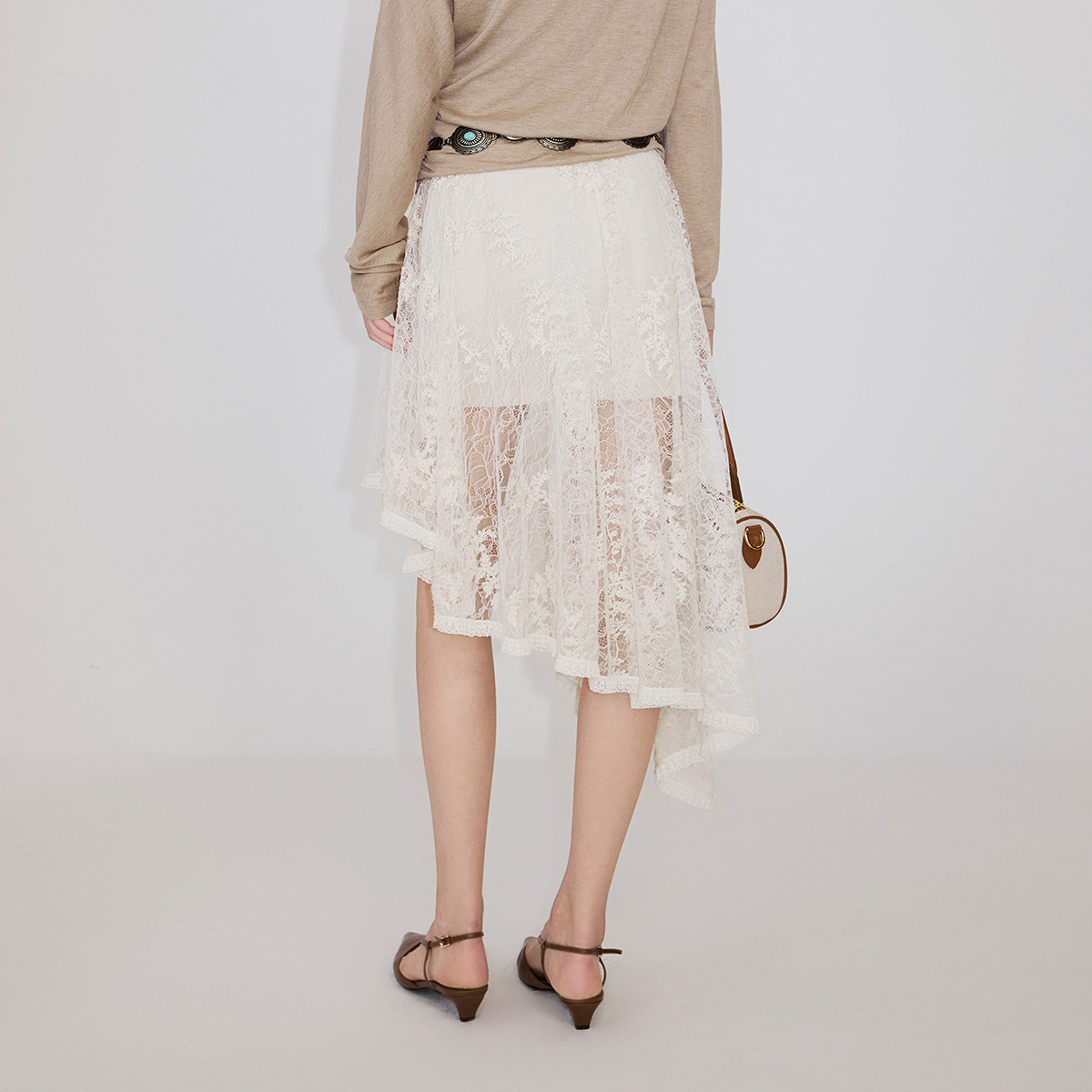 【新品】OCHIRLY欧时力 蕾丝锁链绣花不规则半身裙气质2026春夏