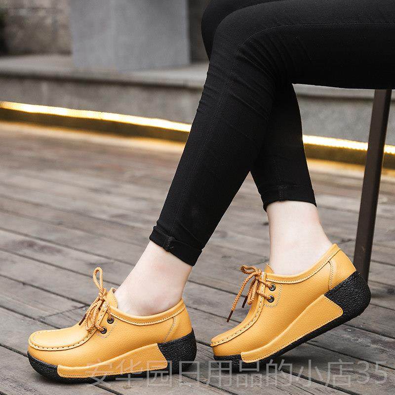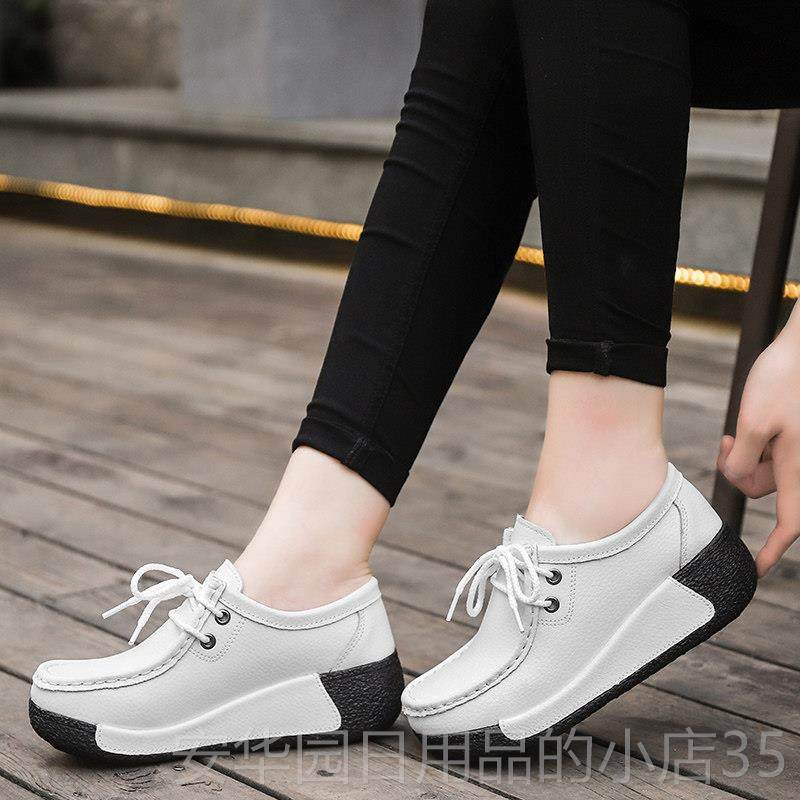 高档皮真女鞋适厚底鞋坡跟松糕女加棉单鞋加绒保暖妈妈鞋舒软底春