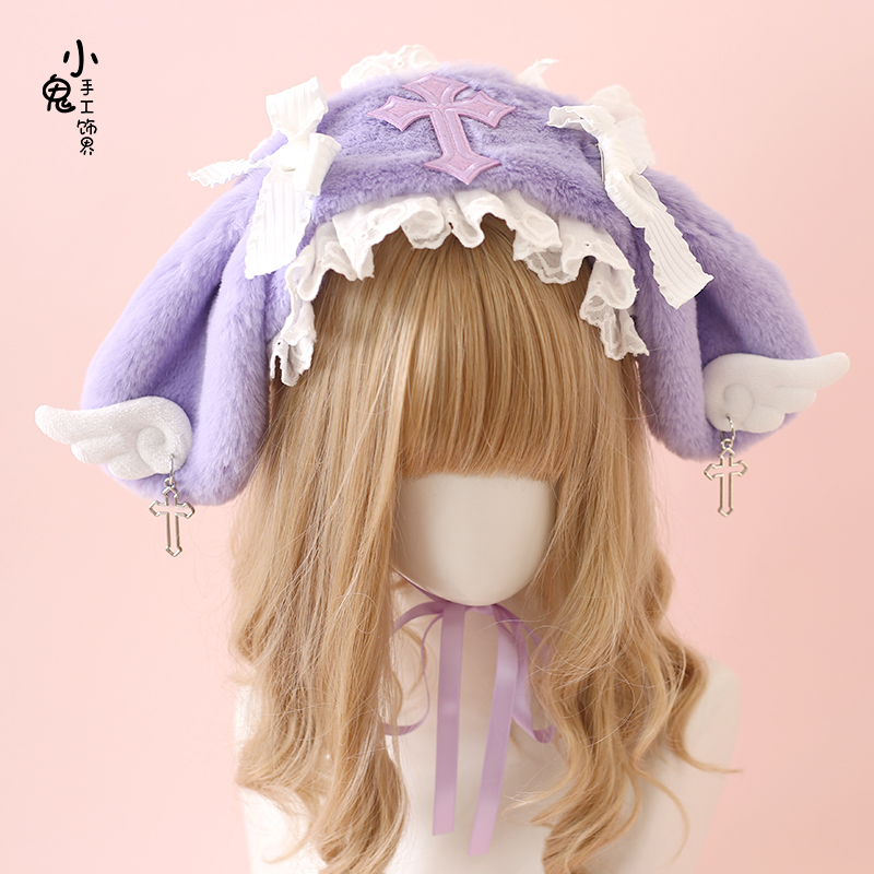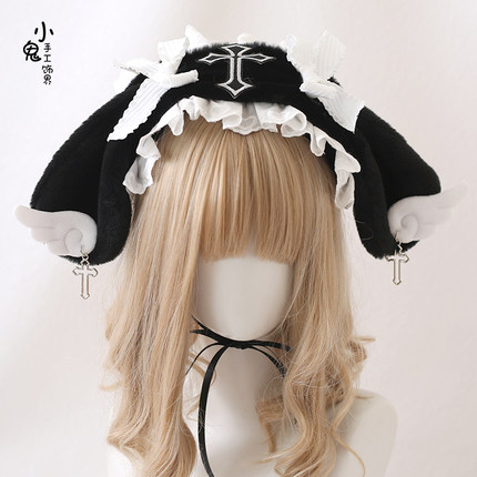 包邮Lolita兔耳发带亚文化病可爱毛绒天使翅膀lo娘头饰洛丽塔头饰