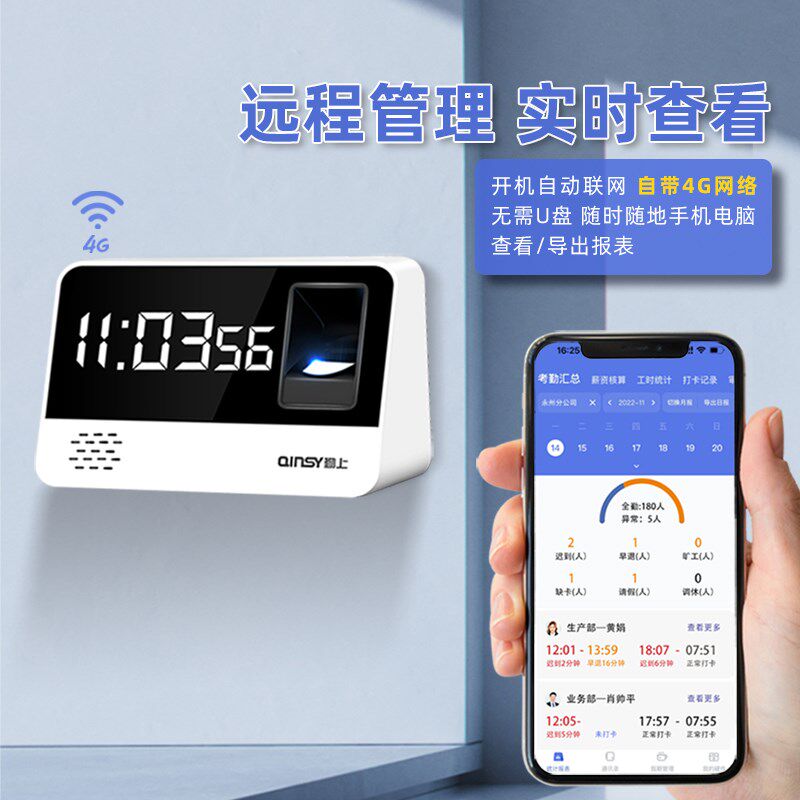 【自带网络 实时查看】勤上云考勤指纹打卡机 远程智能考勤员工上