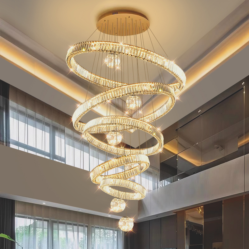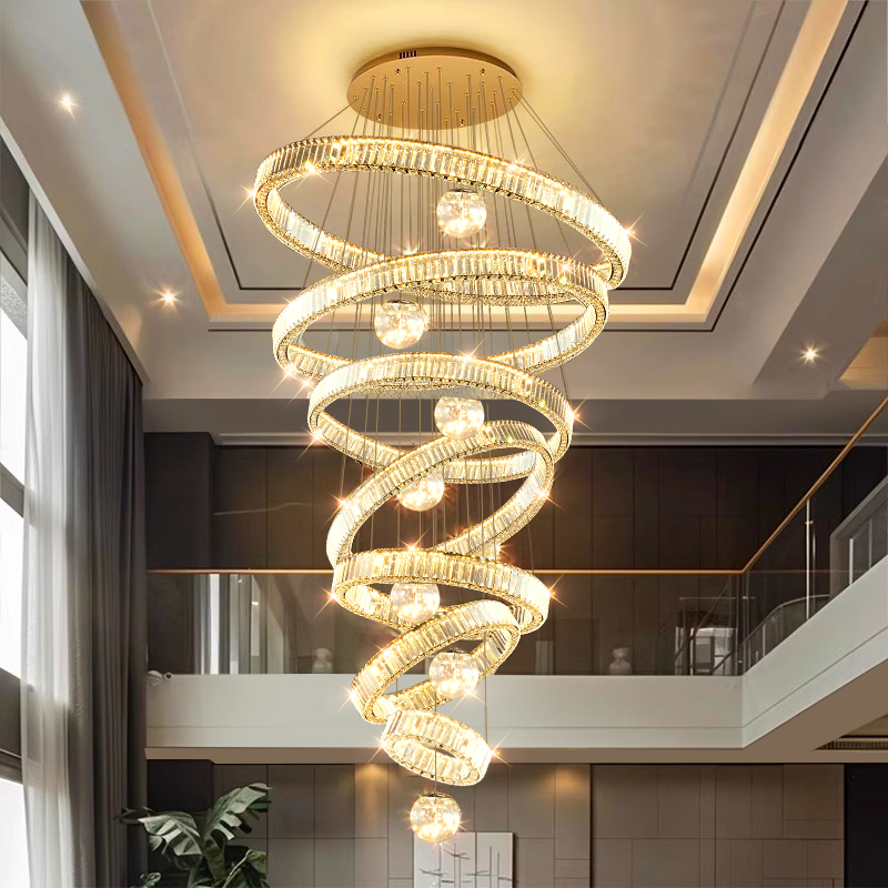 别墅挑空客厅吊灯轻奢现代复式楼水晶灯loft旋转楼梯吊灯2025新款