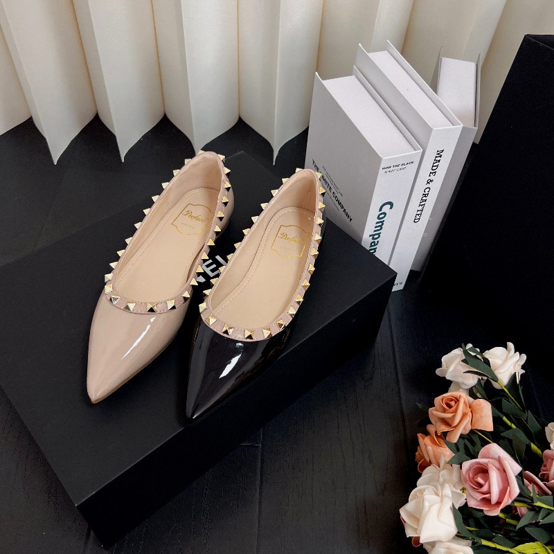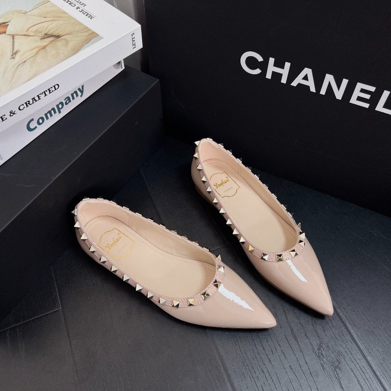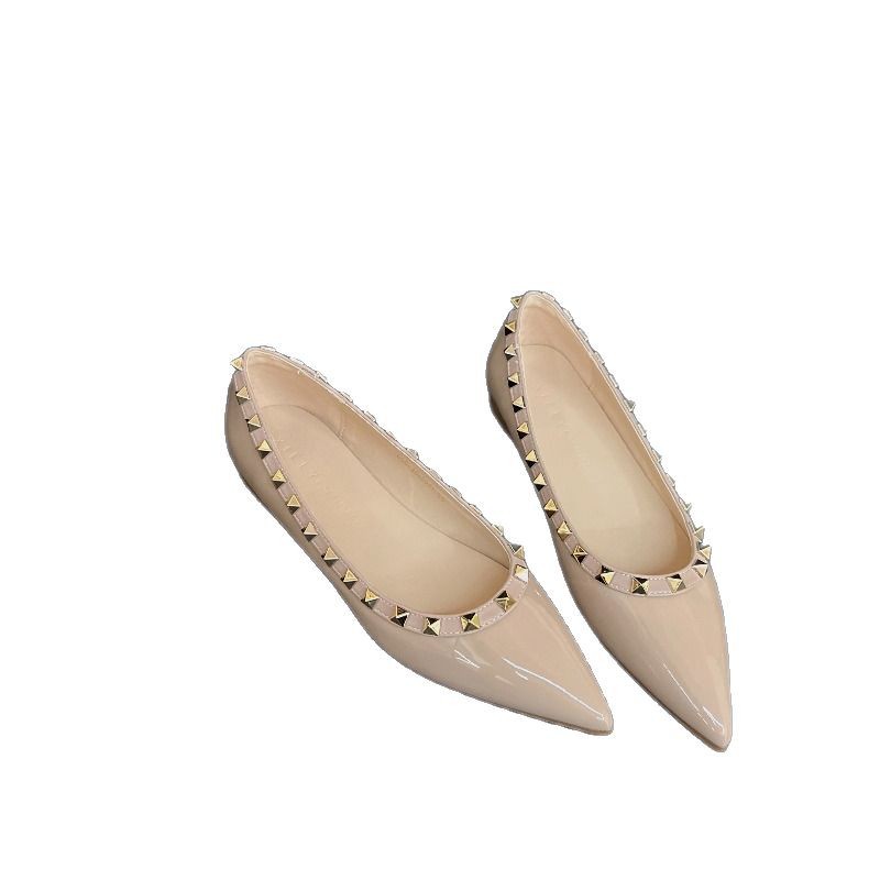法式气质尖头铆钉浅口软底漆皮一脚蹬平底晚晚风浅口女单鞋