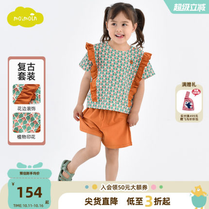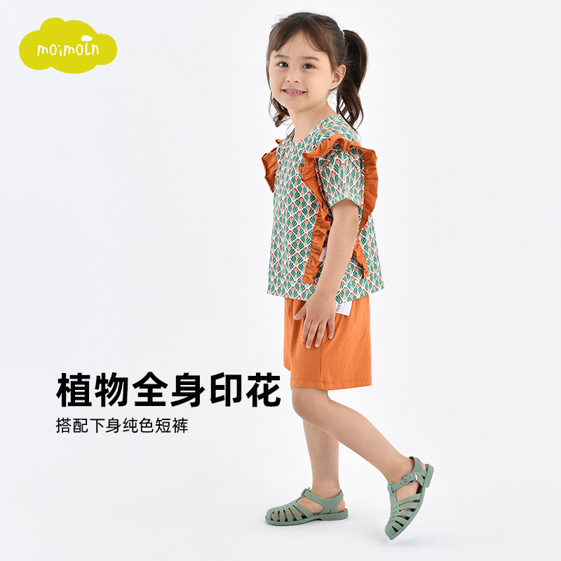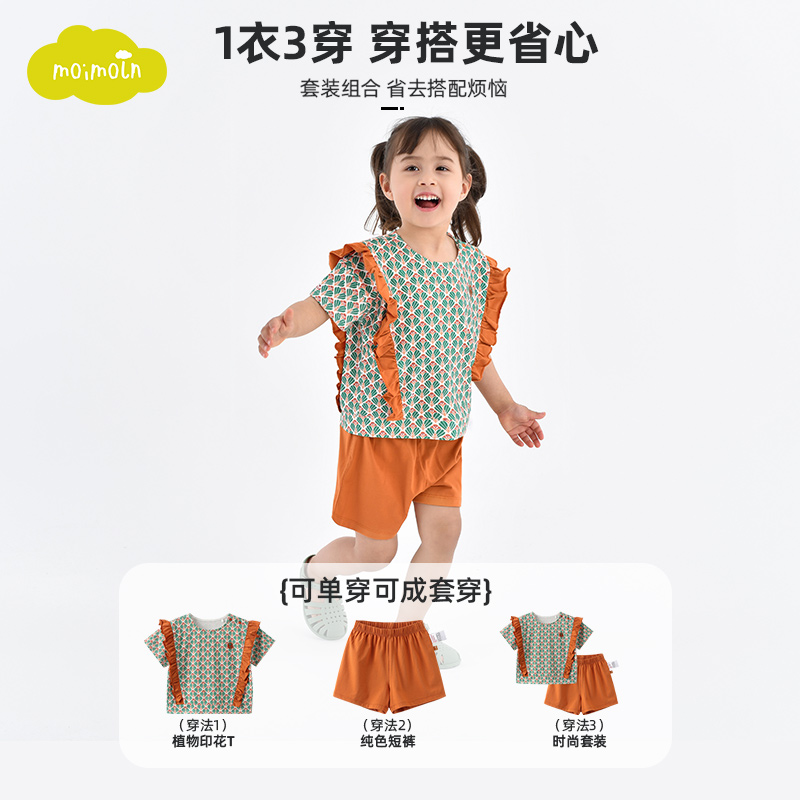 moimoln小云朵童装夏季新款女童T恤短裤两件套夏款时尚套装