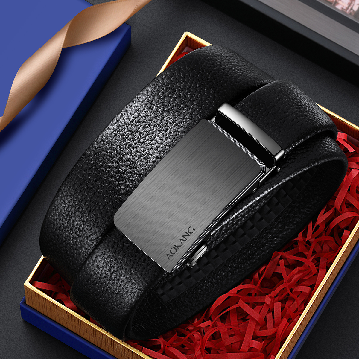奥康皮带男款简约商务高质感真皮腰带自动扣休闲耐用百搭裤腰带J