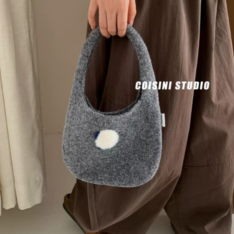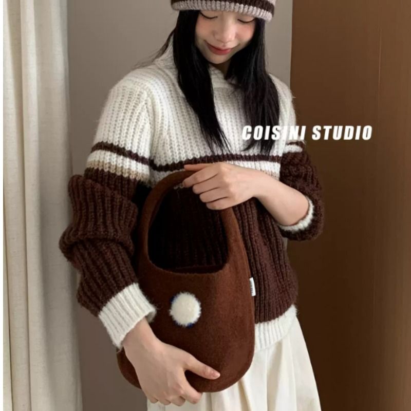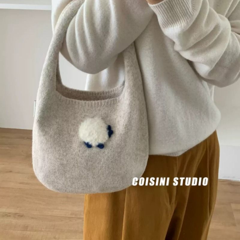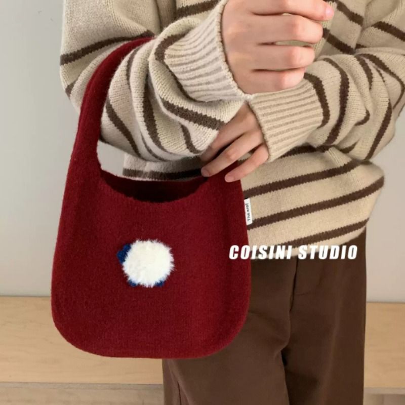 韩系可爱懒洋洋针织毛呢针织手提包包女秋冬托特包手拎包文艺百搭