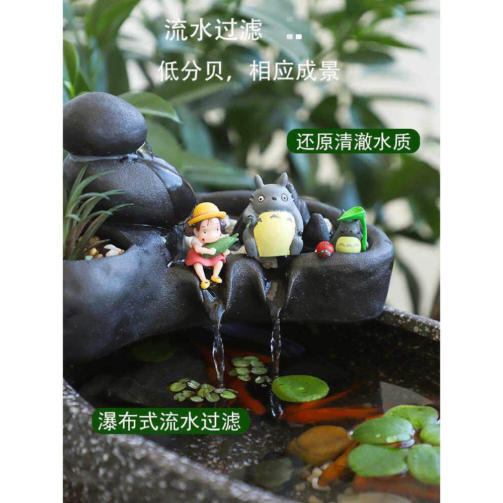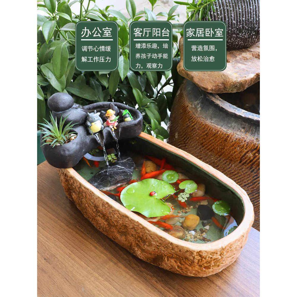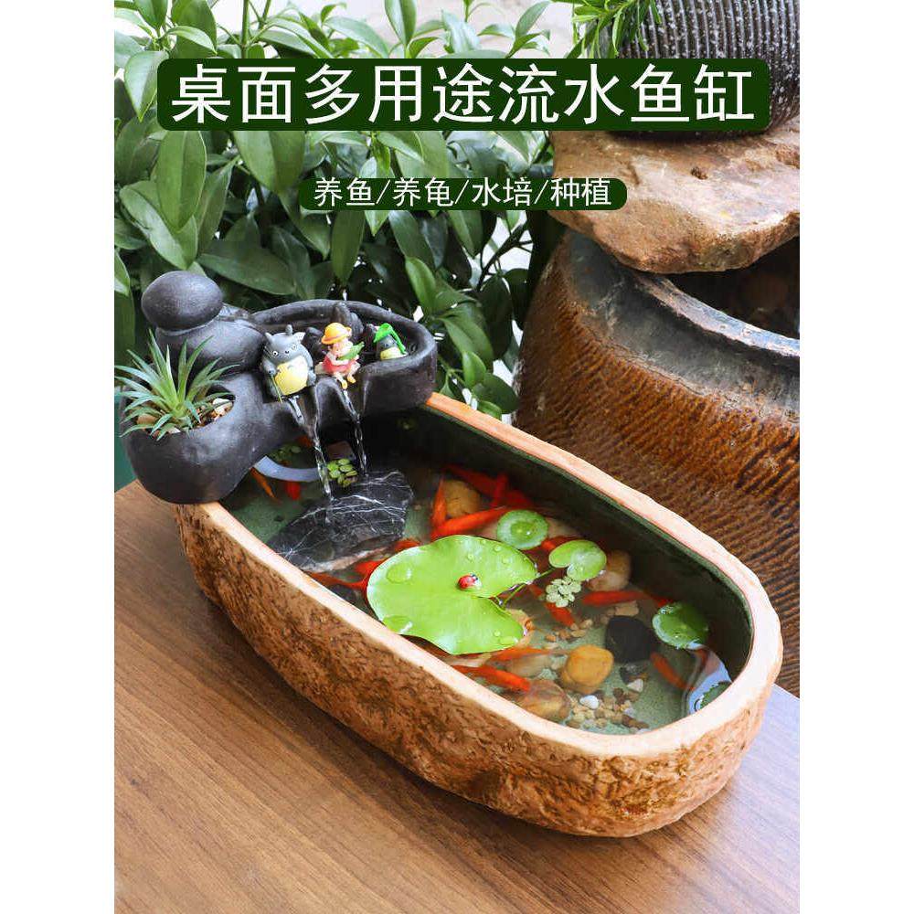 古养鱼生态流水循环缸陶瓷鱼缸绿松石金鱼创意桌面小家居彷石