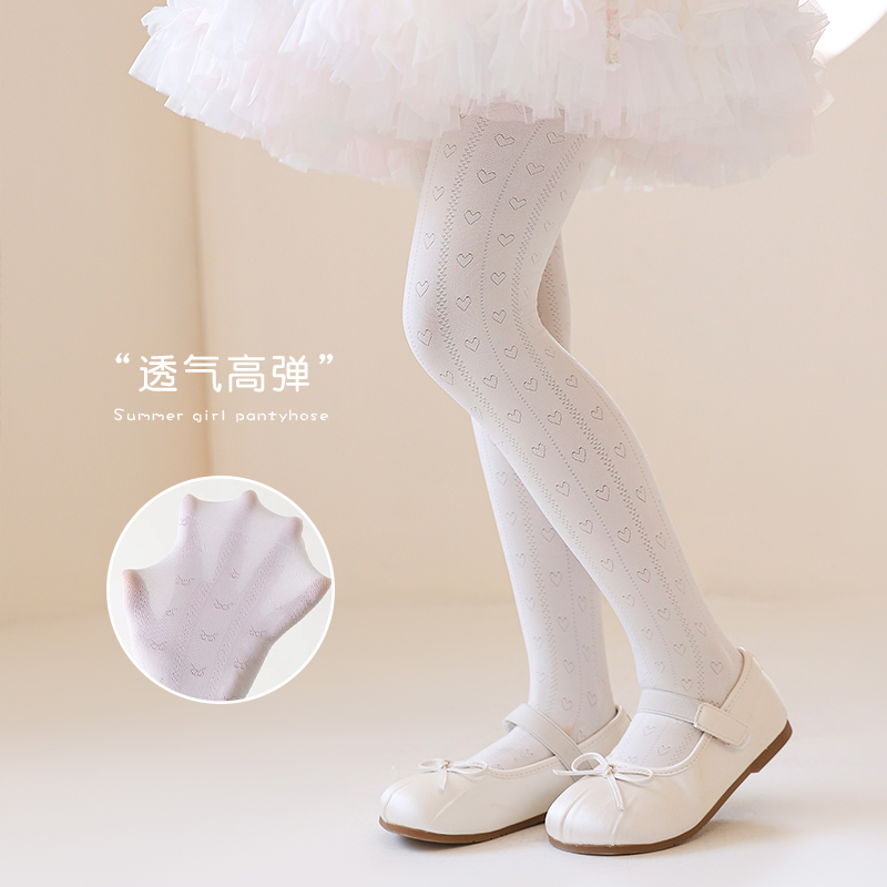 女童连裤袜子夏季薄款透气儿童舞蹈丝袜爱心提花夏天女宝宝打底袜