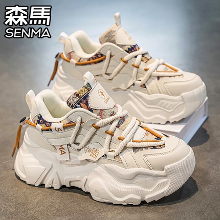 森马男鞋春季透气网面百搭青少年运动休闲跑步内增高国潮老爹潮鞋