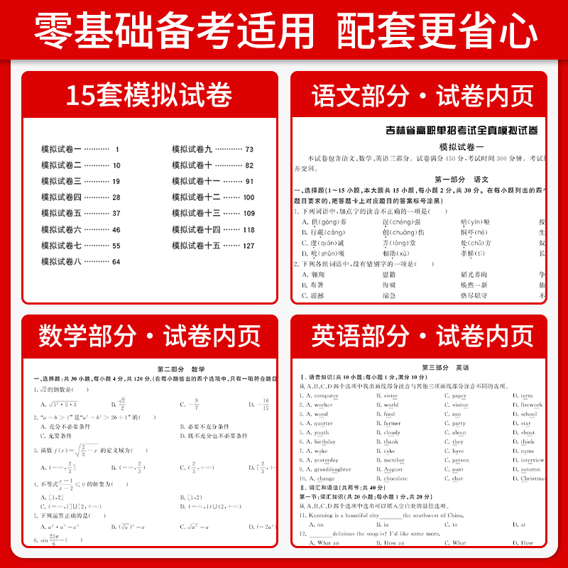 吉林省高职单招考试复习资料2026吉林单招真题模拟试卷语文数学英语职业技能测试综合素质吉林对口升学单招教材面试复习用书