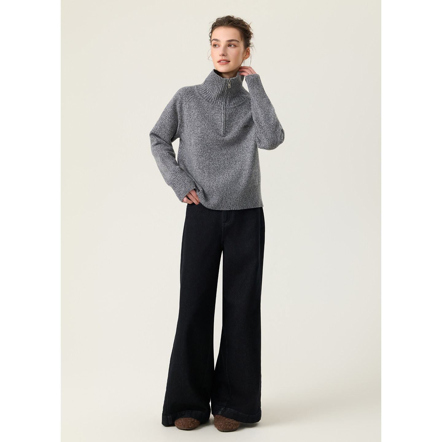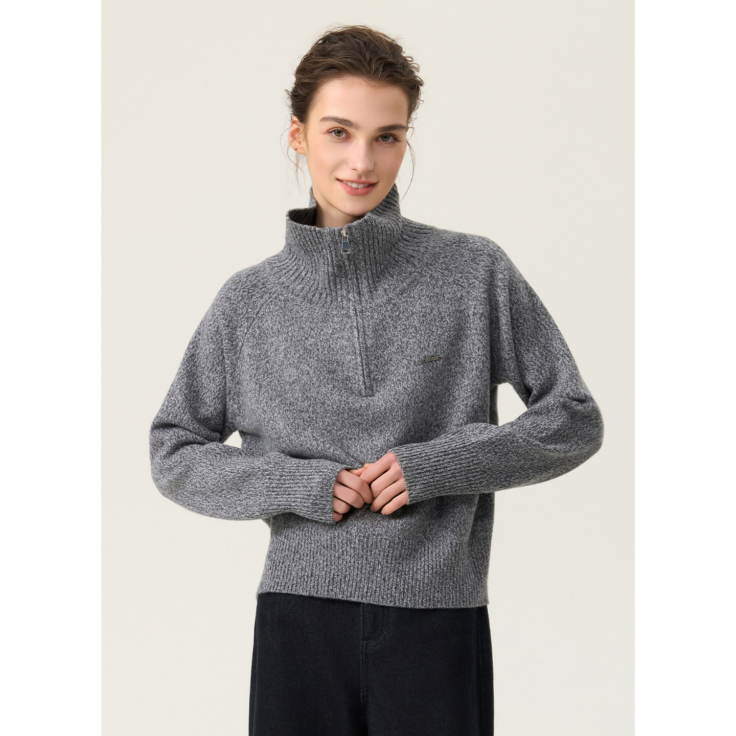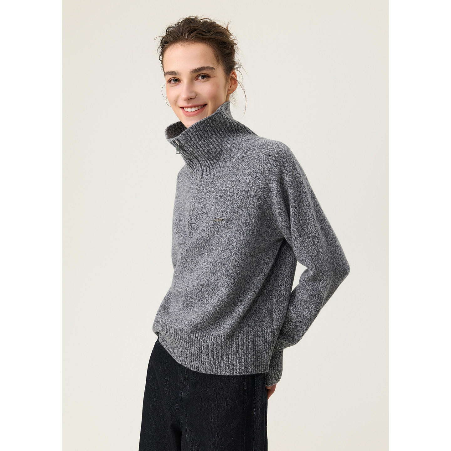 【商场同款】D.SIGN冬慵懒风高领毛衣女半拉链宽松针织衫上衣灰色