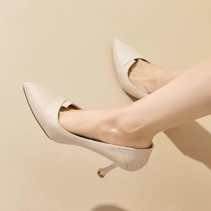 大东浅口鞋24春季新款优雅高跟细跟通勤单鞋尖头套脚女鞋24C3221