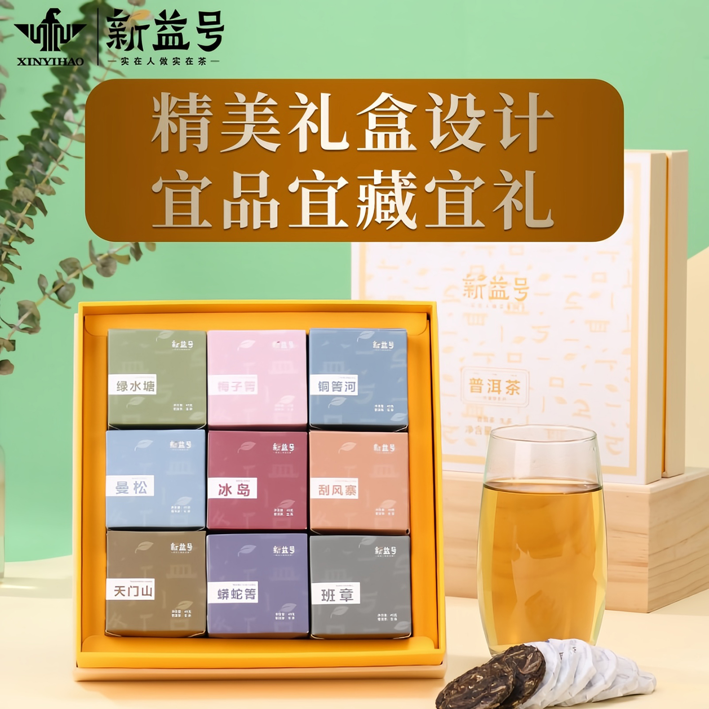 新益号普洱茶生茶冰岛生普云南九大名山古树小茶饼茶包茶叶礼盒装